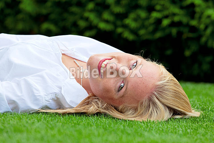 Frau liegt zur Erholung in der Wiese