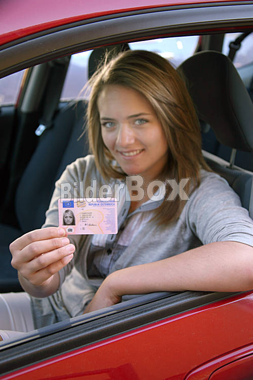 Beschreibung Frau mit Führerschein [ (c) www.BilderBox.com, Erwin Wodicka, Siedlerzeile 3, A-4062 Thening, Tel. + 43 676 5103678.Verwendung nur gegen HONORAR, BELEG, URHEBERVERMERK nach AGBs auf bilderbox.com;...