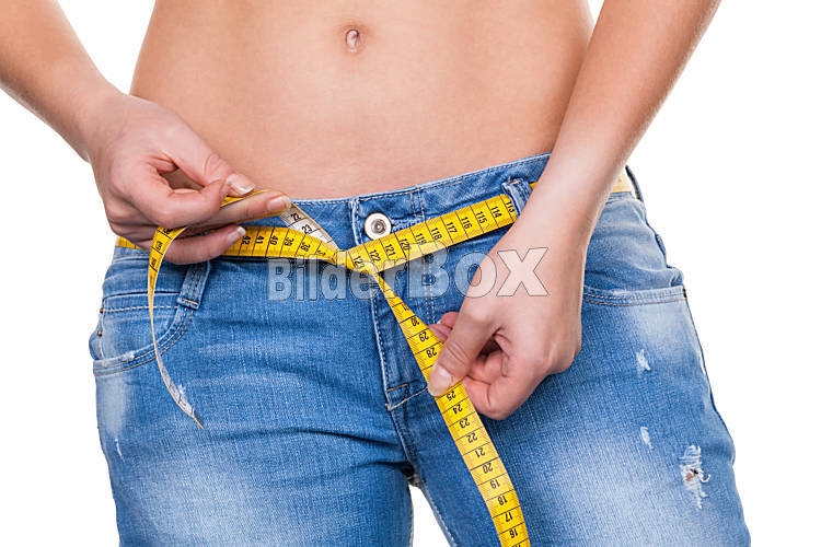Beschreibung Eine junge Frau mit einem Maßband vor der nächsten Diät. Abnehmen und fasten