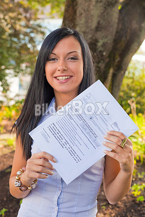 Beschreibung Junge Frau mit einer Wahlkarte (Österreich)