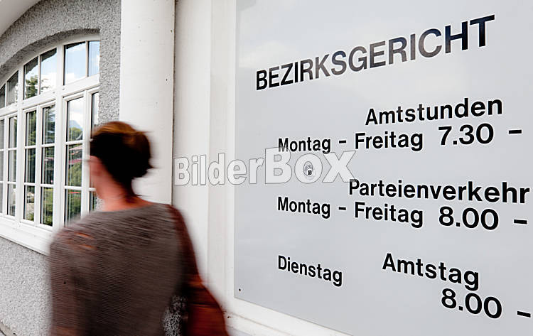 Beschreibung Eine Frau steht vor einem geschlossenen Amt