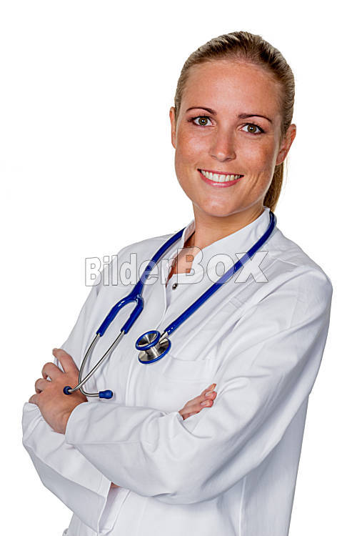 Beschreibung Eine freundliche OP-Ärztin nach erfolgreicher Operation im Krankenhaus.