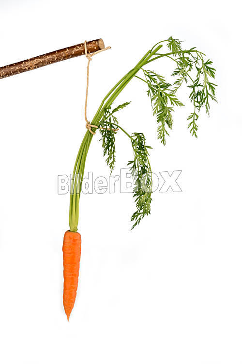 Beschreibung Möhre auf einem Stock. Frisches Obst und Gemüse ist immer gesund. Symbolfoto für Motivation.