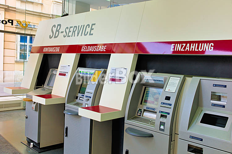 Beschreibung Geldautomaten einer Bank, Symbolfoto für Kreditwesen und Kundenservice