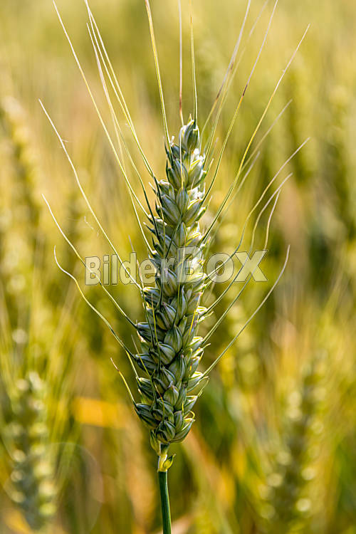 Beschreibung Ein Getreidefeld mit Gerste wartet auf die Ernte. Symbolfoto für Landwirtschaft und gesunde Ernährung.
