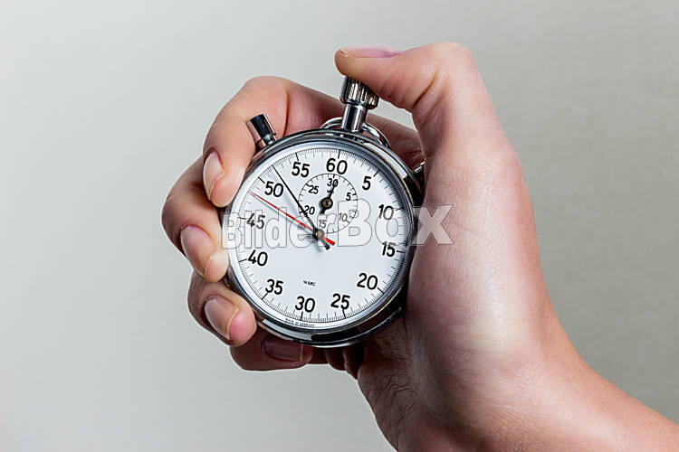 Beschreibung Eine Hand hält eine Stoppuhr.
