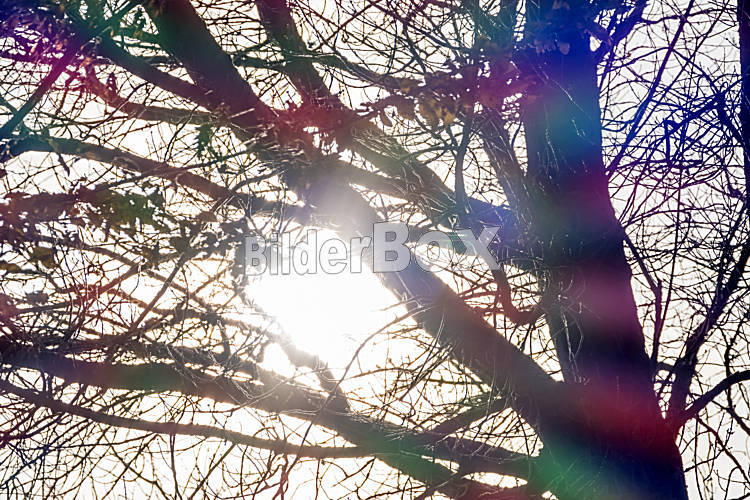 Beschreibung Herbstbäume im Gegenlicht, Symbol für Jahreszeiten, Wandel, Stille
