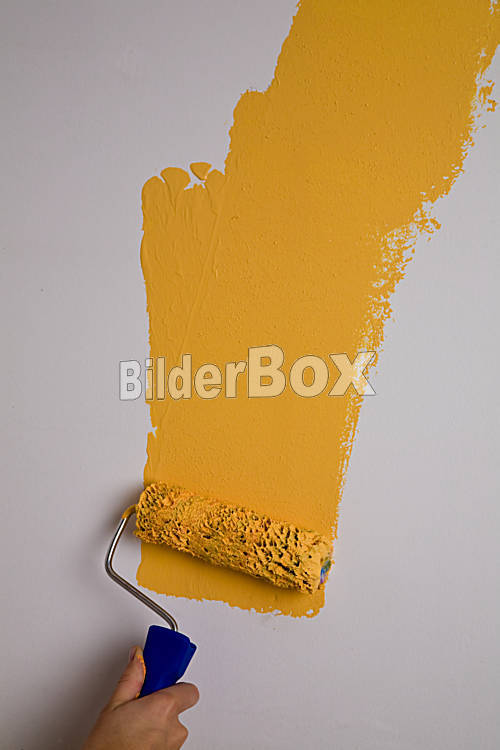 Beschreibung Junge Frau malt ihre Wohnung aus [ (c) www.BilderBox.com, Erwin Wodicka, Siedlerzeile 3, A-4062 Thening, Tel. + 43 676 5103678.Verwendung nur gegen HONORAR, BELEG, URHEBERVERMERK nach AGBs auf...