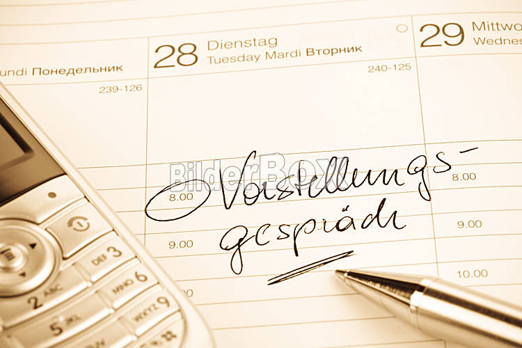 Beschreibung Ein Termin ist in einem Kalender eingetragen: Vorstellungsgespräch