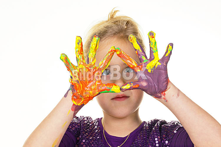 Kind malt mit Fingerfarben