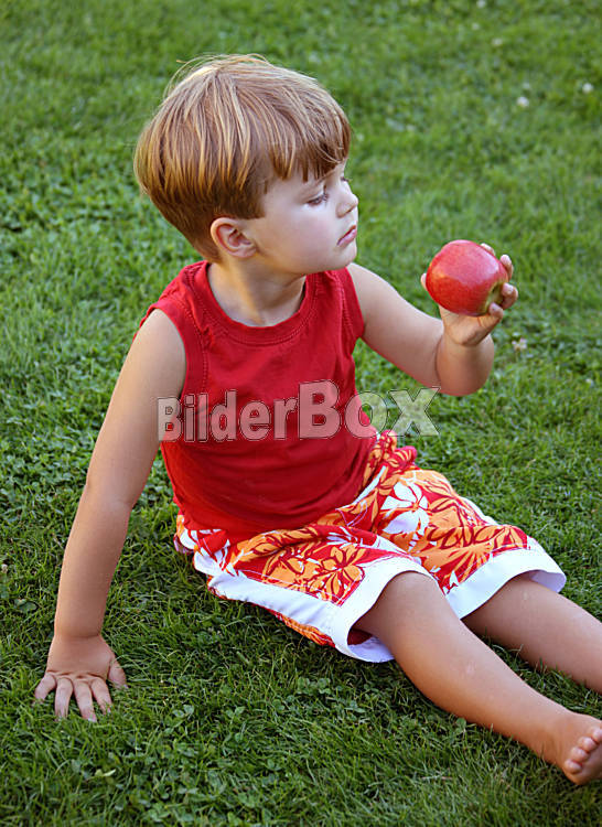 Beschreibung Kind mit Apfel [ (c) www.BilderBox.com, Erwin Wodicka, Siedlerzeile 3, A-4062 Thening, Tel. + 43 676 5103678.Verwendung nur gegen HONORAR, BELEG, URHEBERVERMERK nach AGBs auf bilderbox.com]