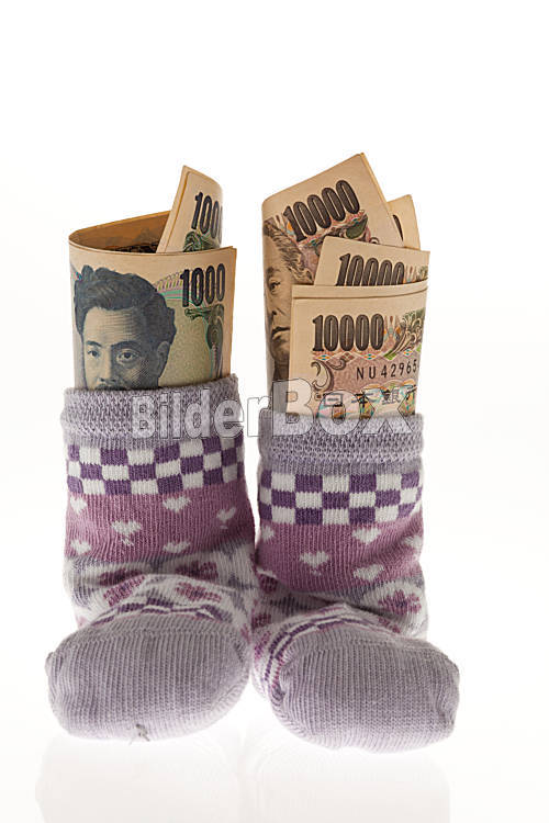 Beschreibung Kinder Socken mit japanischen YEN Geldscheinen.Förderungen von Kindern.