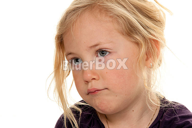 Beschreibung Kinderkopf. Portrait eines kleinen traurigen Mädchens.