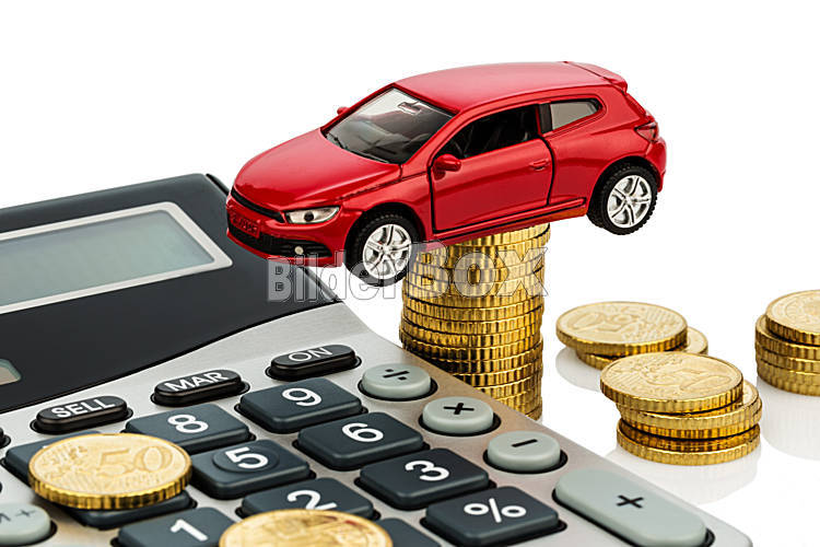 Beschreibung Auto und Taschenrechner. Steigende Kosten bei Autokauf, Leasing, Werkstatt, Tanken und Versicherung