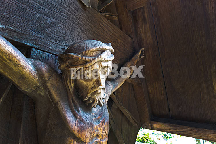 Beschreibung Die Kreuzigung von Jesus Christus auf dem Kreuz von einem Grabmal