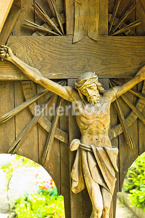 Beschreibung Die Kreuzigung von Jesus Christus auf dem Kreuz von einem Grabmal