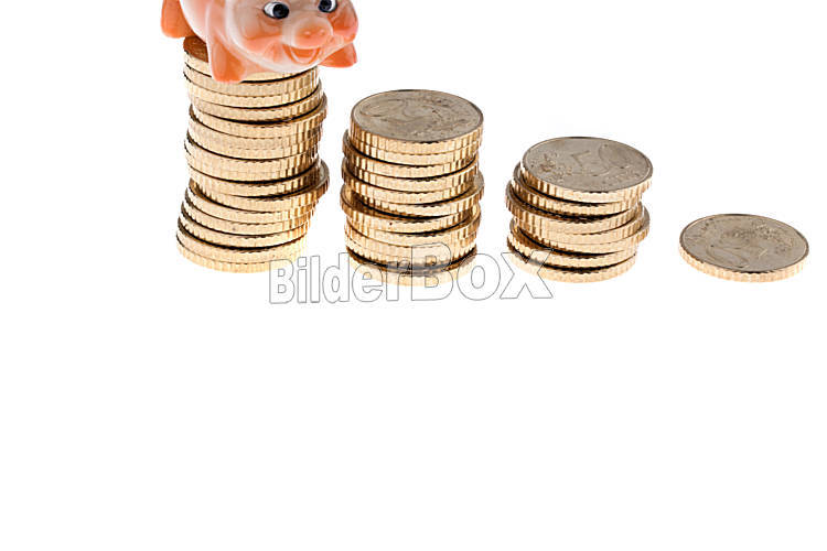 Beschreibung Münzstapel von Euromünzen mit Sparschwein