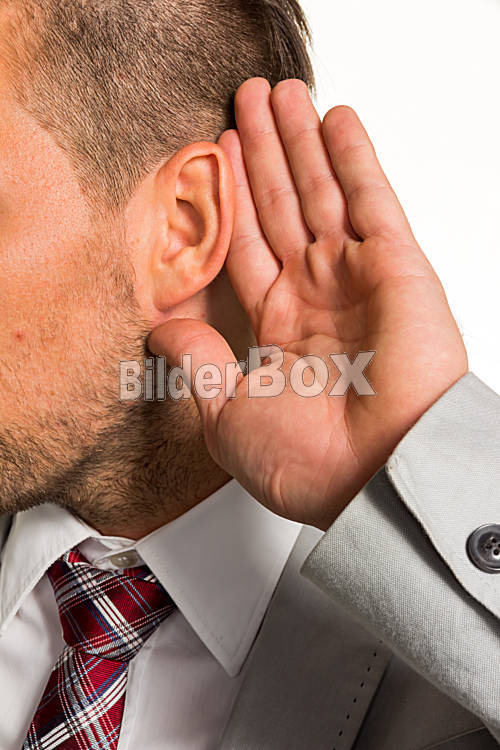 Beschreibung Ein Mann ( Unternehmer oder Manager ) hält seine Hand an sein Ohr
