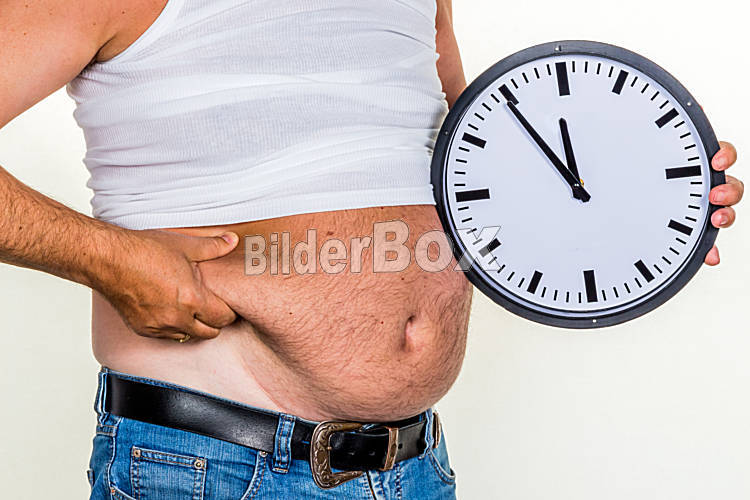 Beschreibung Mann mit Übergewicht. Symbolfoto für Bierbauch, erfolglose Diäten und falsche Ernährung.