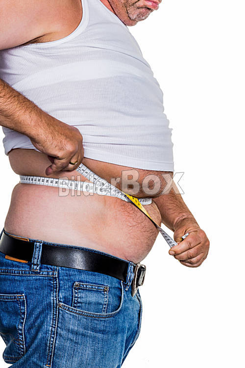 Beschreibung Mann mit Übergewicht. Symbolfoto für Bierbauch, erfolglose Diäten und falsche Ernährung.