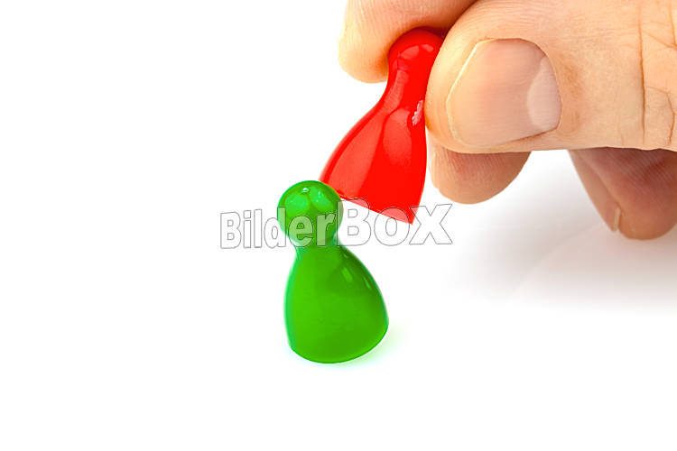 Beschreibung Rote und grÌne Spielfiguren. Mobbing, Einsamkeit und Außenseiter im Team.