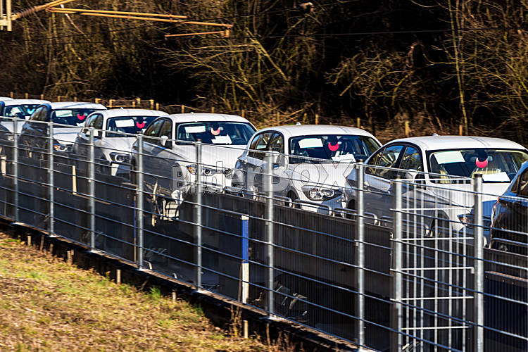 Beschreibung Ein Güterzug bringt neue Autos zu den Autohändlern