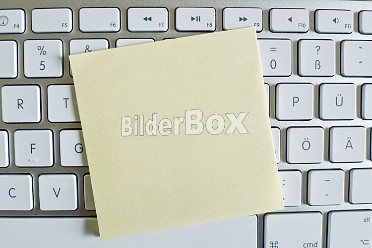 Beschreibung Ein Notizzettel liegt auf der Tastatur eines Computers zur Erinnerung: Leer