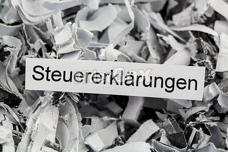 Beschreibung Papierschnitzel mit dem Stichwort Steuererklärungen, Symbolfoto für Steuerlast und Aufbewahrungspflicht