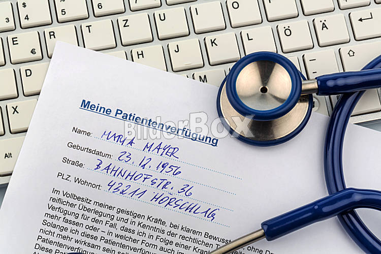 Beschreibung Eine Patientenverfügung in deutscher Sprache. Anweisungen für den Arzt oder das Krankenhaus für den Fall einer unheilbaren Krankheit.