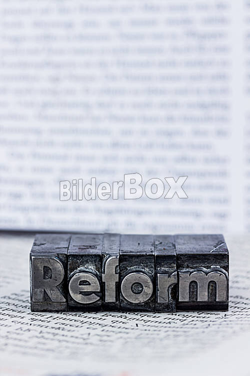 Beschreibung Das Wort " Reform " in Bleibuchstaben geschrieben. Symbolfoto für schnellen Schriftverkehr