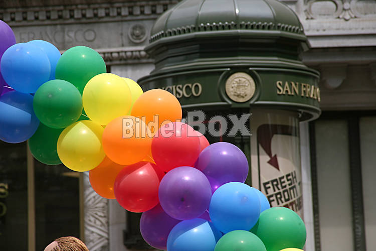 Beschreibung San Francisco, Gayparade [ NUR FUER REDAKTIONELLE VERWENDUNG! NO MODEL-RELEASE! NUR POSITIVE TEXTE! (c) www.BilderBox.com, Erwin Wodicka, Siedlerzeile 3, A-4062 Thening, Tel. + 43 676...