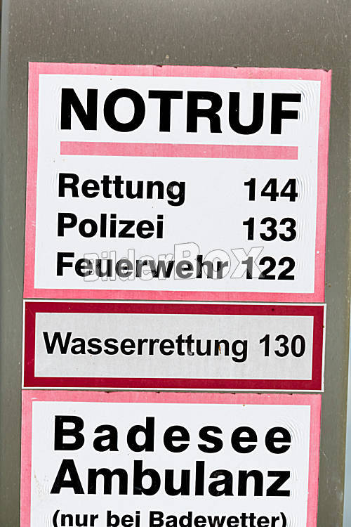 Beschreibung Schilder Notruf Wasserrettung, Symbol für Notruf, Rettung, Hilfe