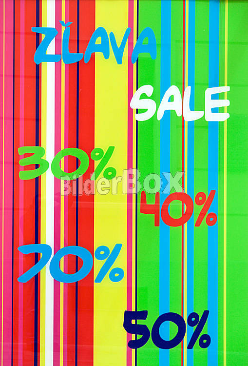 Beschreibung Ein Schild kündigt einen Schlussverkauf in einem Laden an.