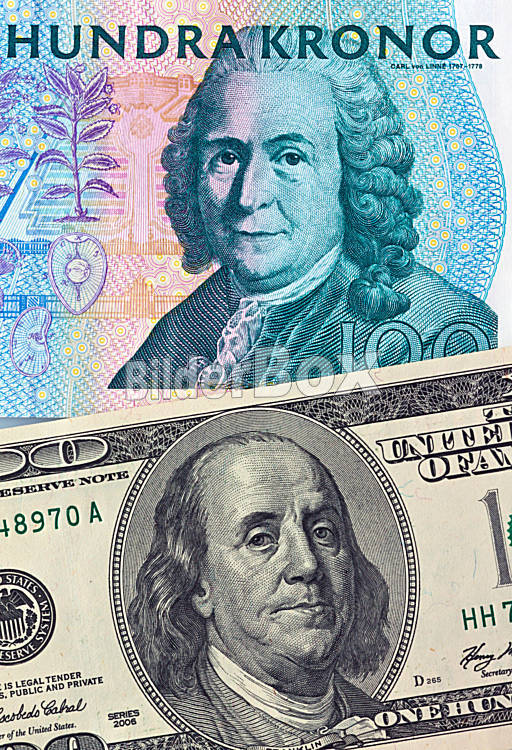 Beschreibung Schwedische Kronen, die Währung Schwedens. Und amerikanische Dollar