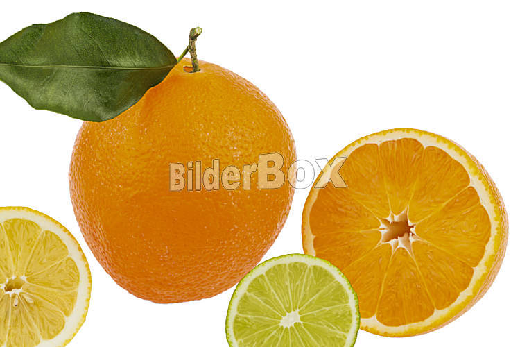 Beschreibung Spiegelung einer Orange. Symbolfoto für gesunde Vitamine durch frisches Obst