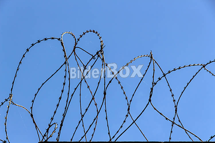 Beschreibung Ein Grundstück wird mit Stacheldraht abgesichert