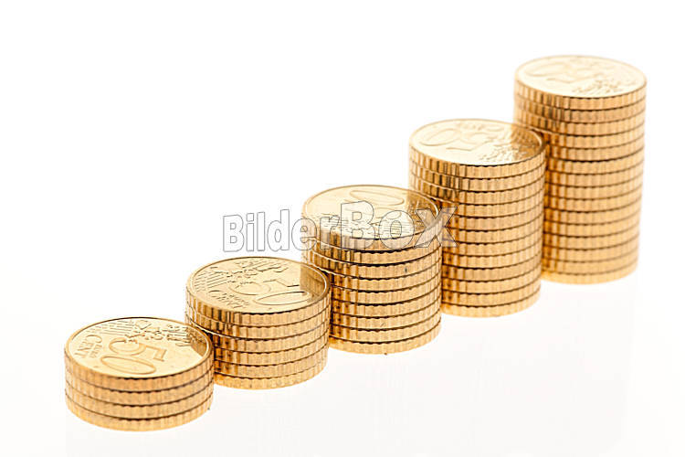 Beschreibung Einige Stapel von Euro Geld Münzen auf weißem Hintergrund