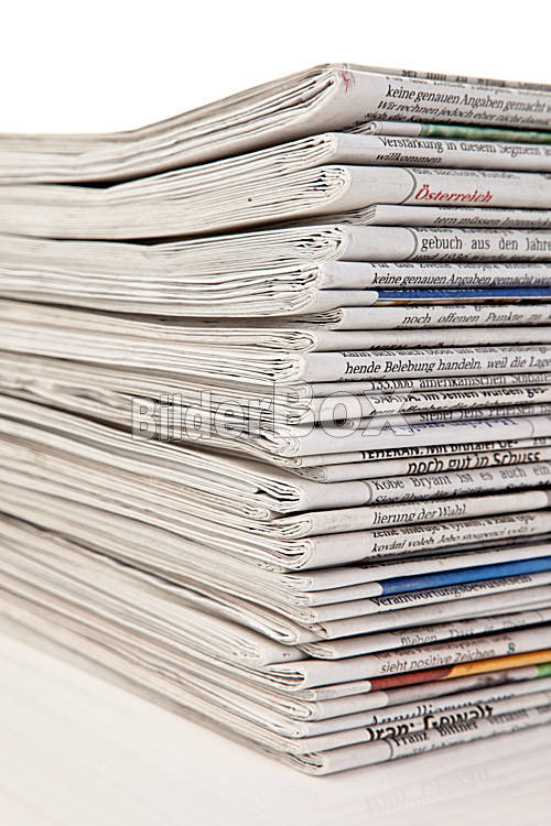 Beschreibung Alte Zeitungen und Zeitschriften auf einem Stapel