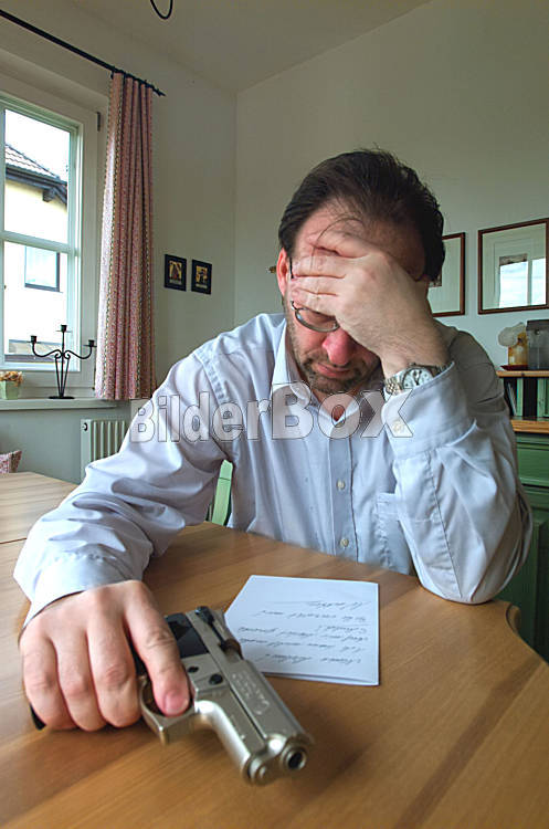 Beschreibung Symbolbild, Mann will Selbstmord begehen, Abschiedsbrief Copyright (2002) by BilderBox.com; Erwin Wodicka, A-4062 Breitbrunn. Tel.: 0043 676 5103 678. Veröffentlichung nur nach unseren AGBs:...