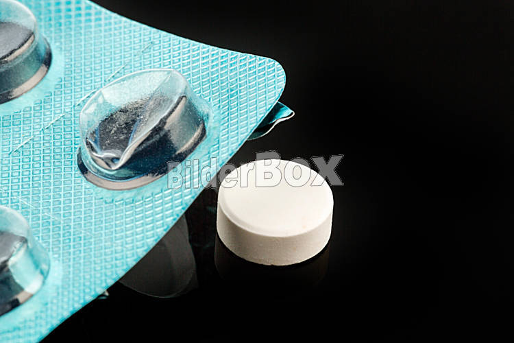 Beschreibung Tabletten in Blisterpackung, Symbolfoto für Gesundheit, Medizin und Tablettenabhängigkeit