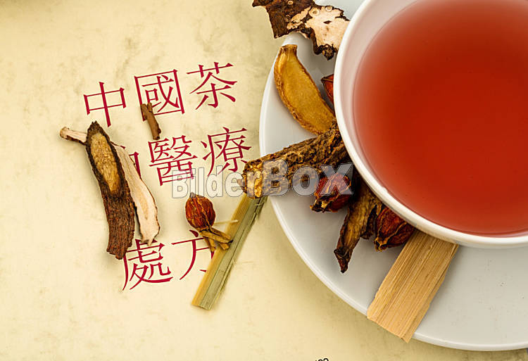 Beschreibung Zutaten für einen Tee in der traditionellen chinesischen Medizin. Heilung von Krankheiten durch alternative Methoden.