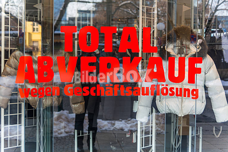 Beschreibung Total Abverkauf wegen Geschäftsauflösung. Symbolfoto für Konkurs und Pensionierung.
