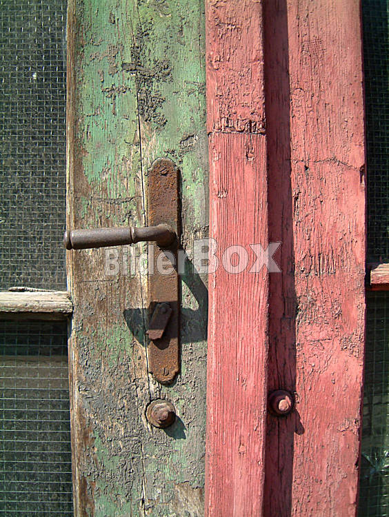 Beschreibung Tuerschnalle einer alten Hautuere mit stark abbroeckelnder Farbe Copyright (2002) by BilderBox.com; Erwin Wodicka, A-4062 Thening. Veröffentlichung nach unseren AGBs: www.bilderbox.com/agb.html...