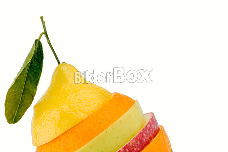 Beschreibung Mehrere verschiedene Scheiben von frischen Früchten mit vielen Vitaminen