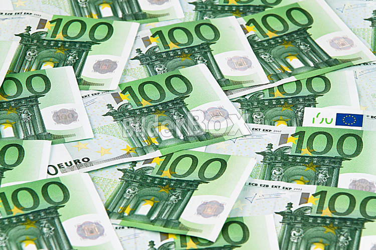 Beschreibung Viele grüne hundert Euro Geldscheine liegen nebeneinander