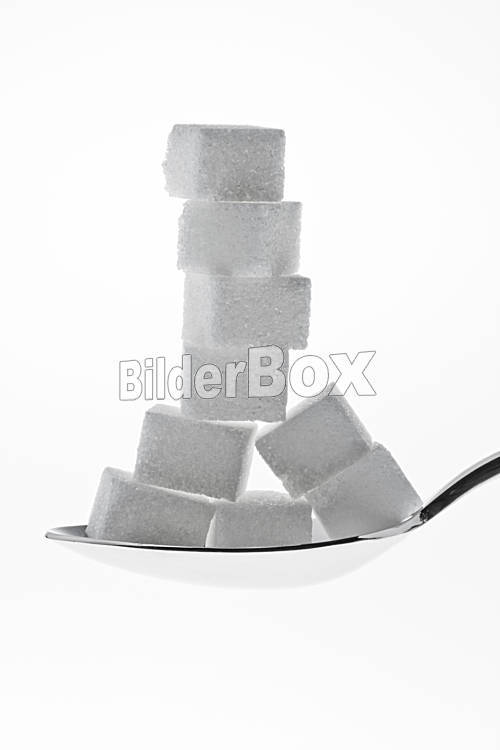 Beschreibung Viele Stücke Zucker zum süßen isloiert auf weißem Hintergrund