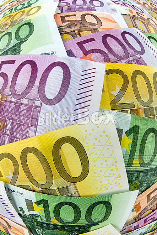 Beschreibung Viele verschiedene Euro Geldscheine. Symbolfoto für Reichtum und Geldanlage
