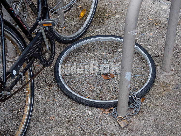 Beschreibung Fahrrad Vorderrad wurde wegen Diebstahl angeketten. Rad wurde trotzdem gestohlen.