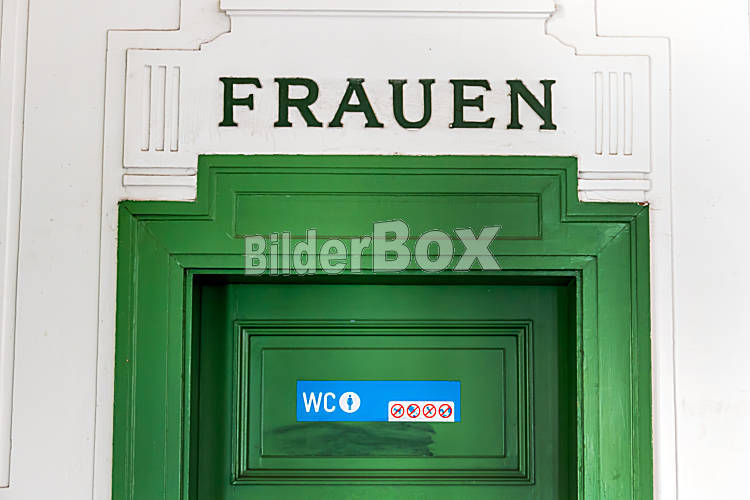 Beschreibung Ein Schild weist den Weg zur nächsten öffentllichen Toilette