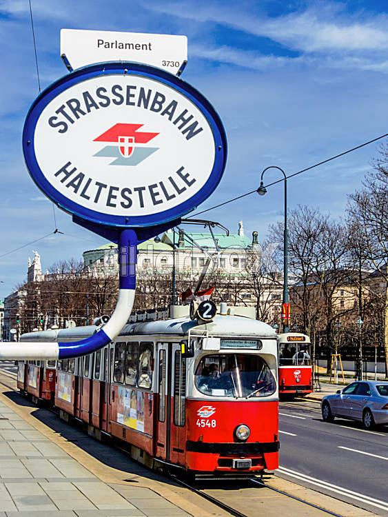 Beschreibung Die Straßenbahn in Wien, Österreich. Öffentlicher Nahverkehr in Städten